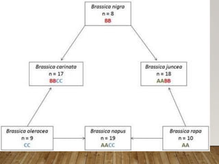 Modern methods for creating genetic variability include mutation breeding, polyploidy breeding, and distant hybridization. Mutation breeding uses physical and chemical mutagens like radiation and chemicals to induce heritable changes in genes and create new genetic variations in crops that can be selected for desirable traits. Polyploidy breeding exploits variations in chromosome number, like creating tetraploids, to induce changes and create new varieties. Mutation breeding and polyploidy breeding are important tools in plant breeding for generating genetic diversity.