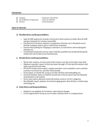 M. MuthuKumar is seeking a position that utilizes his skills and talents. He has a Cost and Management Accountant certification from the Institute of Cost Accountants of India and has over 2 years of experience as a Financial Analyst at Flextronics India Pvt Ltd. His responsibilities there included sales and cost analysis, production reporting, inventory management, and standard cost updates. He is proficient in English and Tamil and has achieved academic and extracurricular honors.