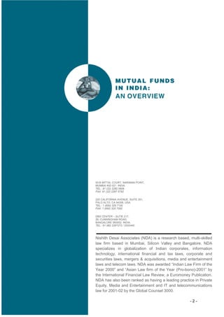 1) Nishith Desai Associates is a research based, multi-skilled law firm with offices in Mumbai, Silicon Valley, and Bangalore.