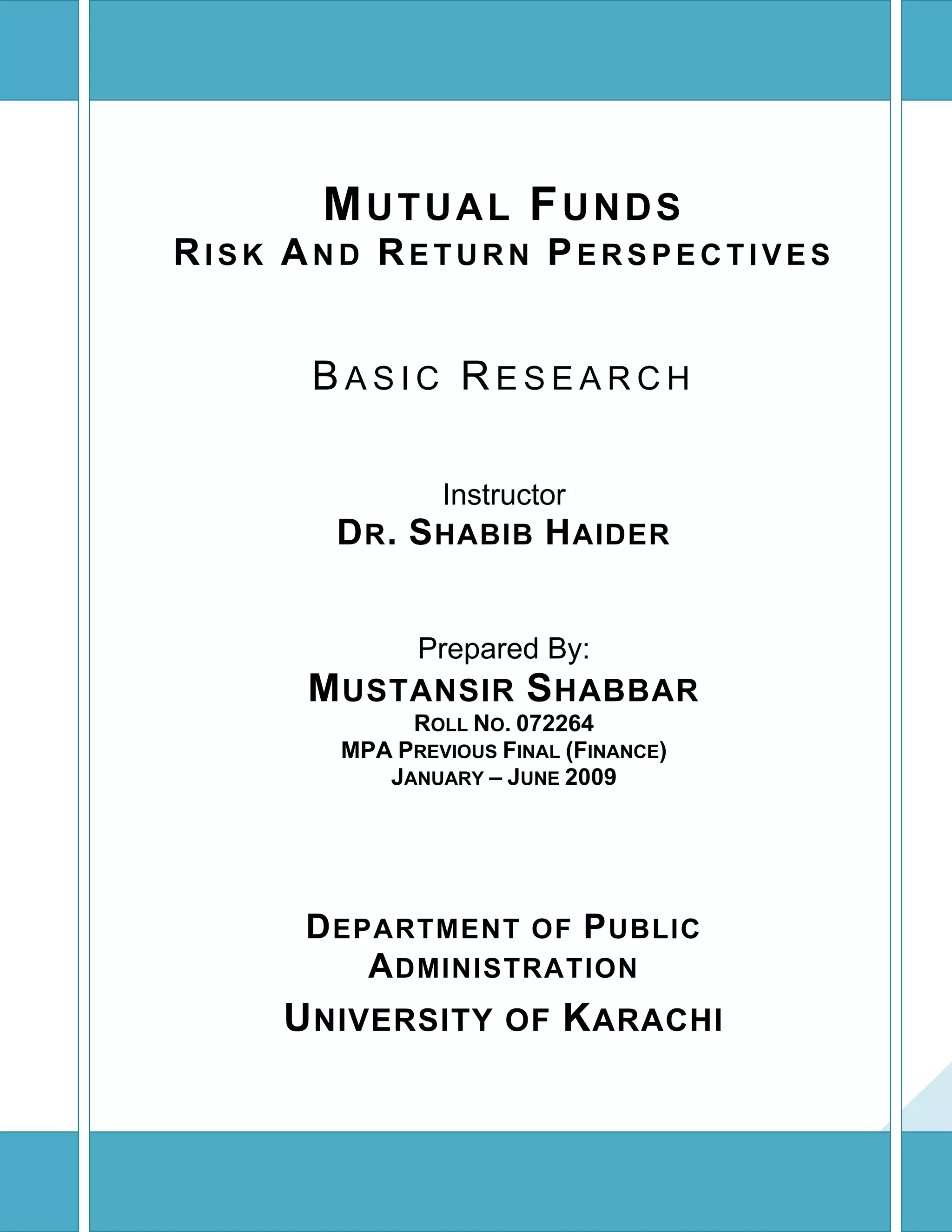 The document provides an overview of mutual funds, including: