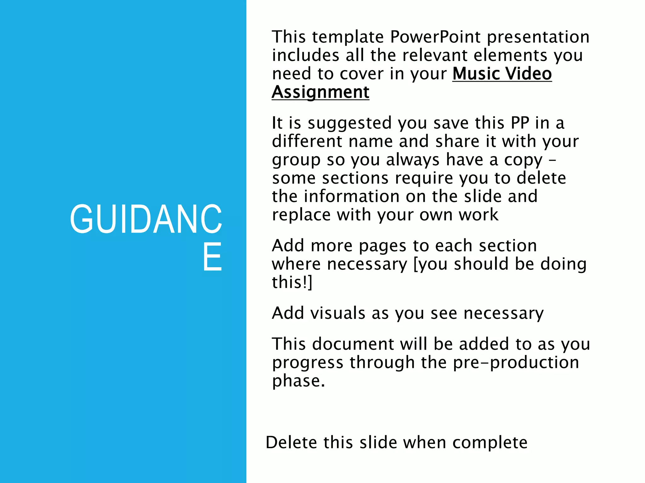 - Storyboarding and shot lists will be used to plan sequencing and visualize how the visuals relate to the song. Inspiration boards exploring color, lighting, and "mise-en-scene" will also help develop the concept.
