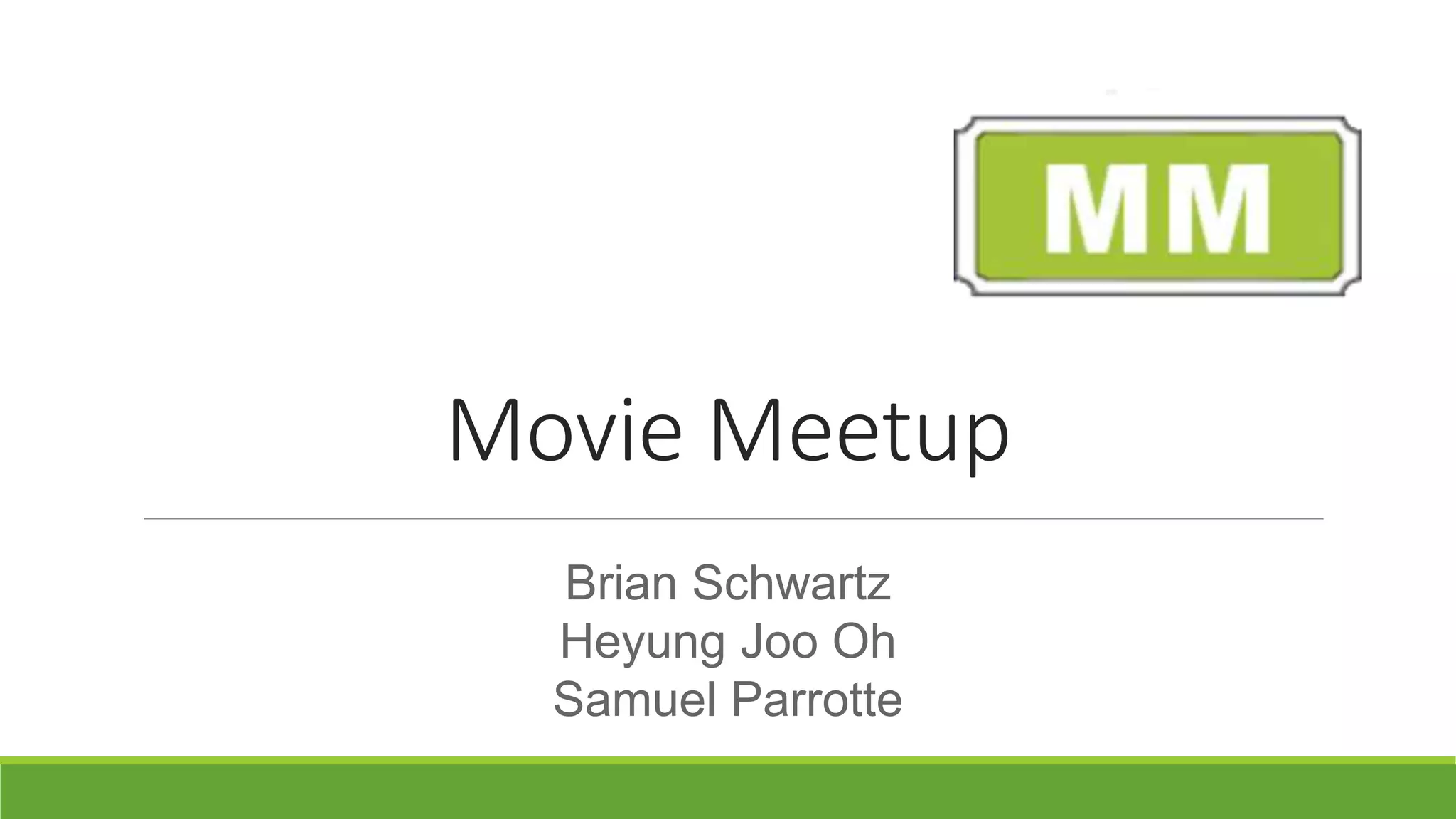 The document discusses an MVP for a movie meetup app that allows users to coordinate selecting a movie and theater with friends via text polling. User testing showed high importance and satisfaction for selecting the theater and movie as well as viewing poll results. The next version of the MVP will focus on showing future movie times, tracking favorites and recently used options, personalizing text messages, and displaying who voted for what movie.