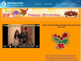 This presentation introduces video email and video resumes as the future of online communication and job applications. It argues that video email will replace text-based email as people increasingly prefer visual, personalized messages over typed words. The presentation promotes a new web-based video email and resume service that allows users to easily send and view video content without downloads or extra software. It claims the service offers HD quality, customization, and a large potential market as less than 1% of internet users currently use video email. The presentation also discusses network marketing opportunities through the service and how it has already created 21 millionaires.