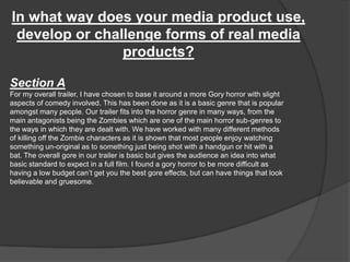 The document summarizes the media student's horror trailer project. Some key points: