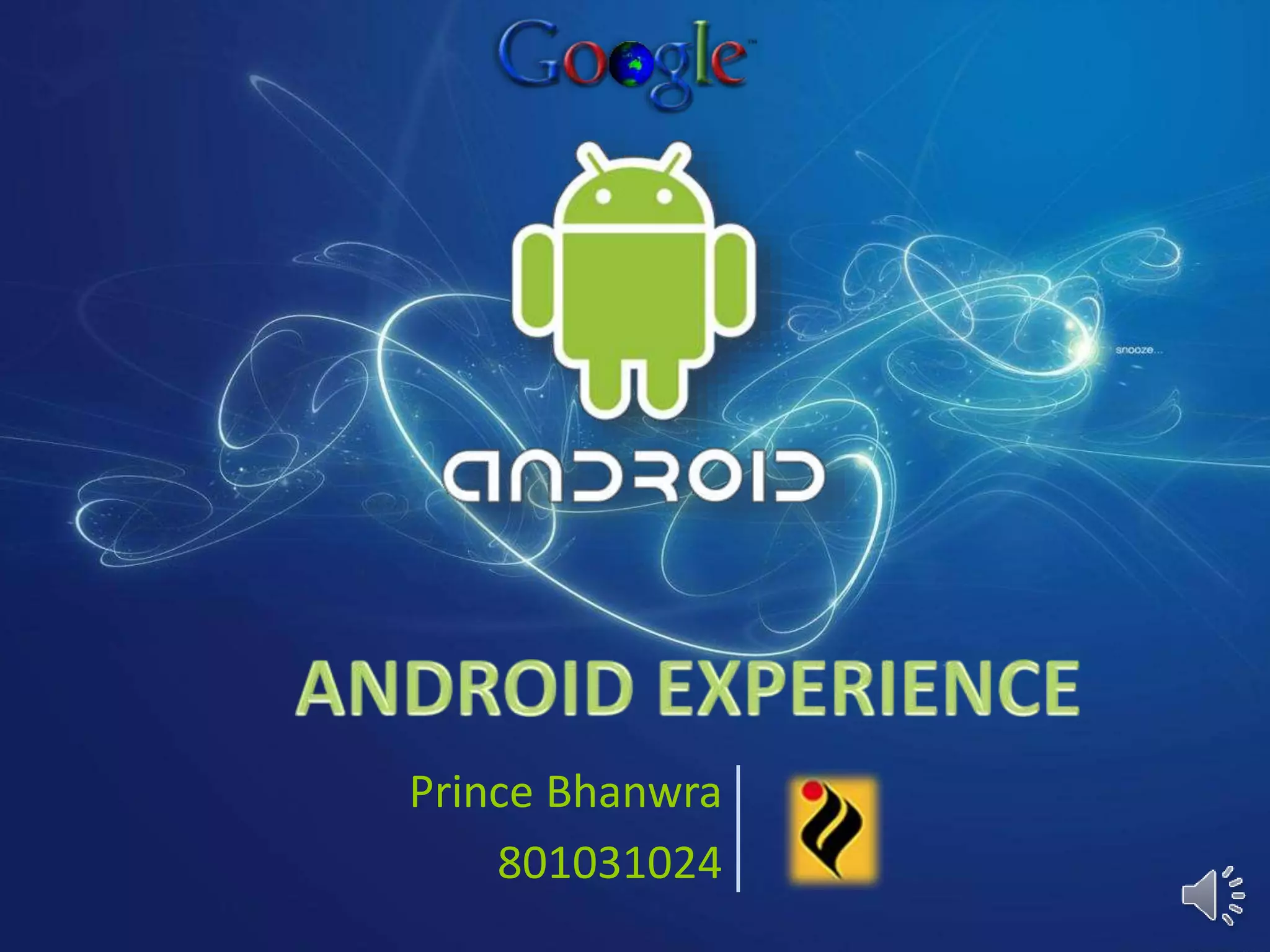 Android is an open source operating system developed by Google and the Open Handset Alliance for use in mobile devices. It uses a modified Linux kernel and other open source software, allowing developers to write managed code using Java-like languages. Applications are compiled into Dalvik bytecode to run on Android's optimized virtual machine. The Android platform is designed to break down barriers between applications by allowing them to share components and data through its intent system.