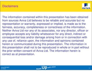 The document discusses long term care insurance options from Aviva including MyCare and MyCare Plus. It provides an overview of long term care needs, what long term care entails, details of the existing ElderShield program in Singapore, and introduces MyCare and MyCare Plus as additional long term care insurance options. Contact details for Aviva representatives are also provided.