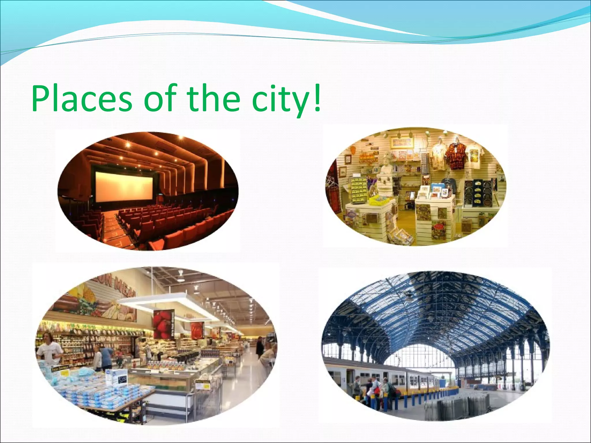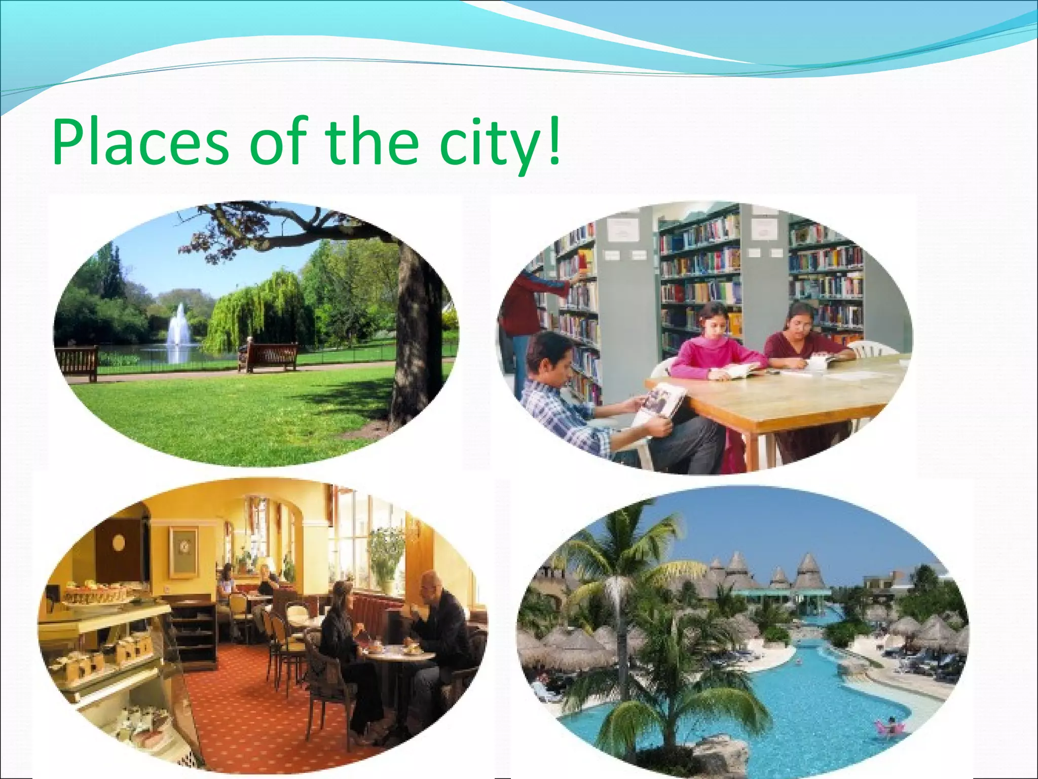 The document lists various places in a city and what activities can be done in each place. It includes locations like bookshops, parks, libraries, supermarkets, banks, hospitals, cinemas, theatres, bus stations, zoos, museums, schools, police stations, butchers, and bakeries. It also provides words that can be used to sequence future activities, such as first, then, after, after that, and finally. An example is given of sequencing a weekend itinerary starting with going to the park with a dog, then the cinema, beach, and finally home. The document encourages writing a sequenced tour of favorite places in one's own city or town.