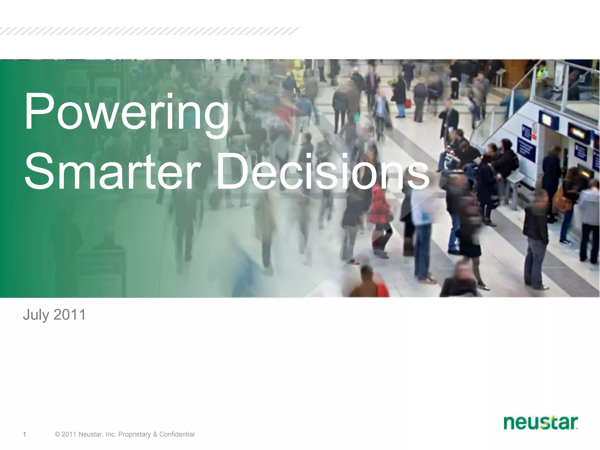 This document is a presentation by Neustar that discusses how communications have become more complex over time with additional networks, capabilities, applications and ecosystems. It provides statistics on Neustar's domain name, telephone number, IP address and other services. Neustar is described as a global provider of information and analysis to industries like internet, telecommunications and marketing. It applies technologies to data to provide market intelligence, analytics and decision support. The presentation gives examples of Neustar's services and solutions and encourages making smarter decisions with their help.