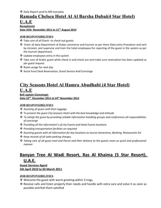 Irfan Sabir Mukadam is seeking new challenges and provides a resume highlighting his skills and experience in communication, planning and organizing, problem solving, and as a team player from various roles in hotel reception and customer service in Dubai and other cities in the UAE from 2008 to present. He includes education details and declares the information in his resume is correct to the best of his knowledge.
