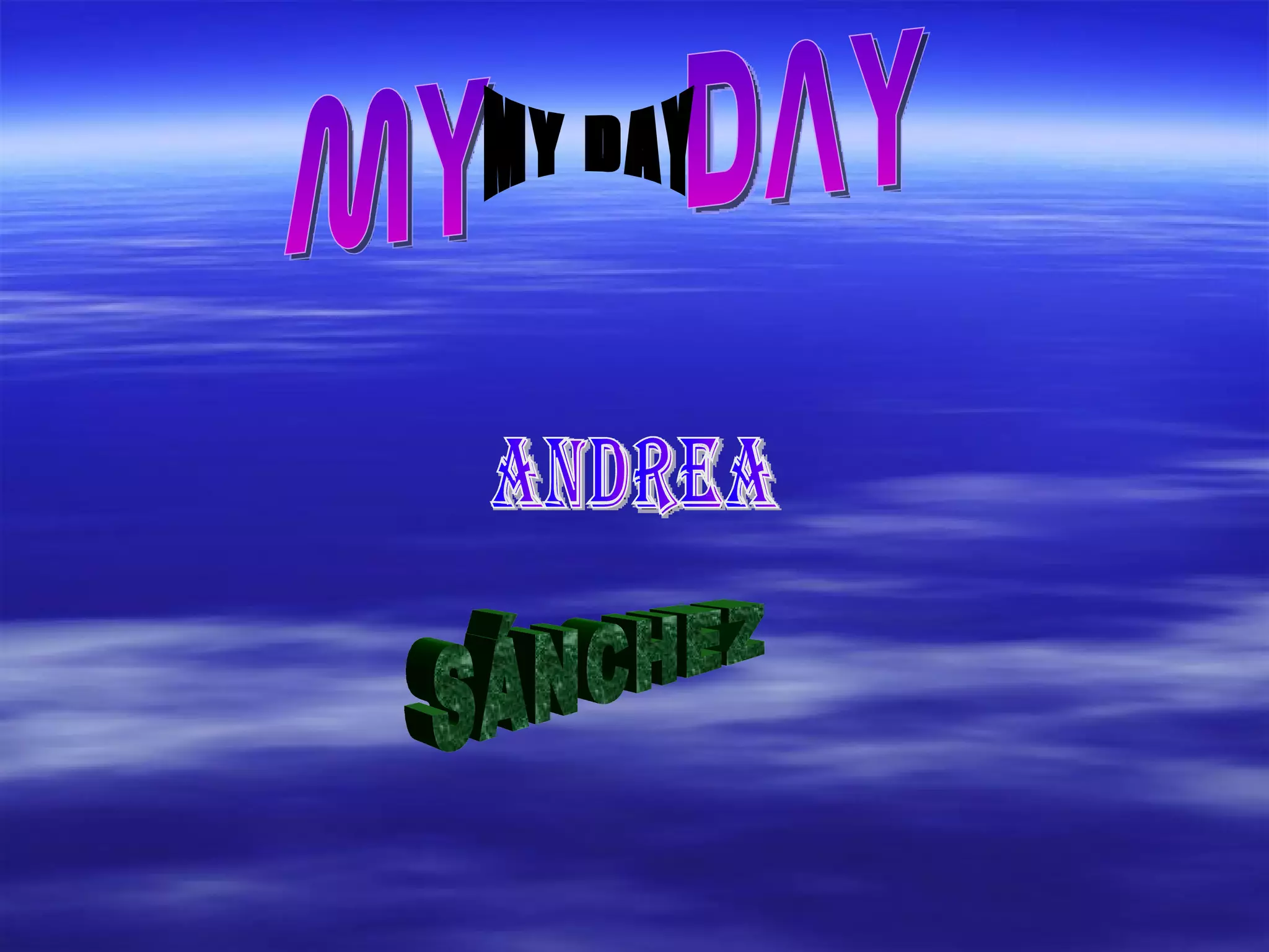 Andrea Sanchez describes her daily routine, waking up at 8am, getting dressed at 8:15am, having breakfast at 8:30am, having lunch at 1pm, going home at 5pm, doing homework at 6pm, having dinner at 8pm, and going to bed at 9pm.