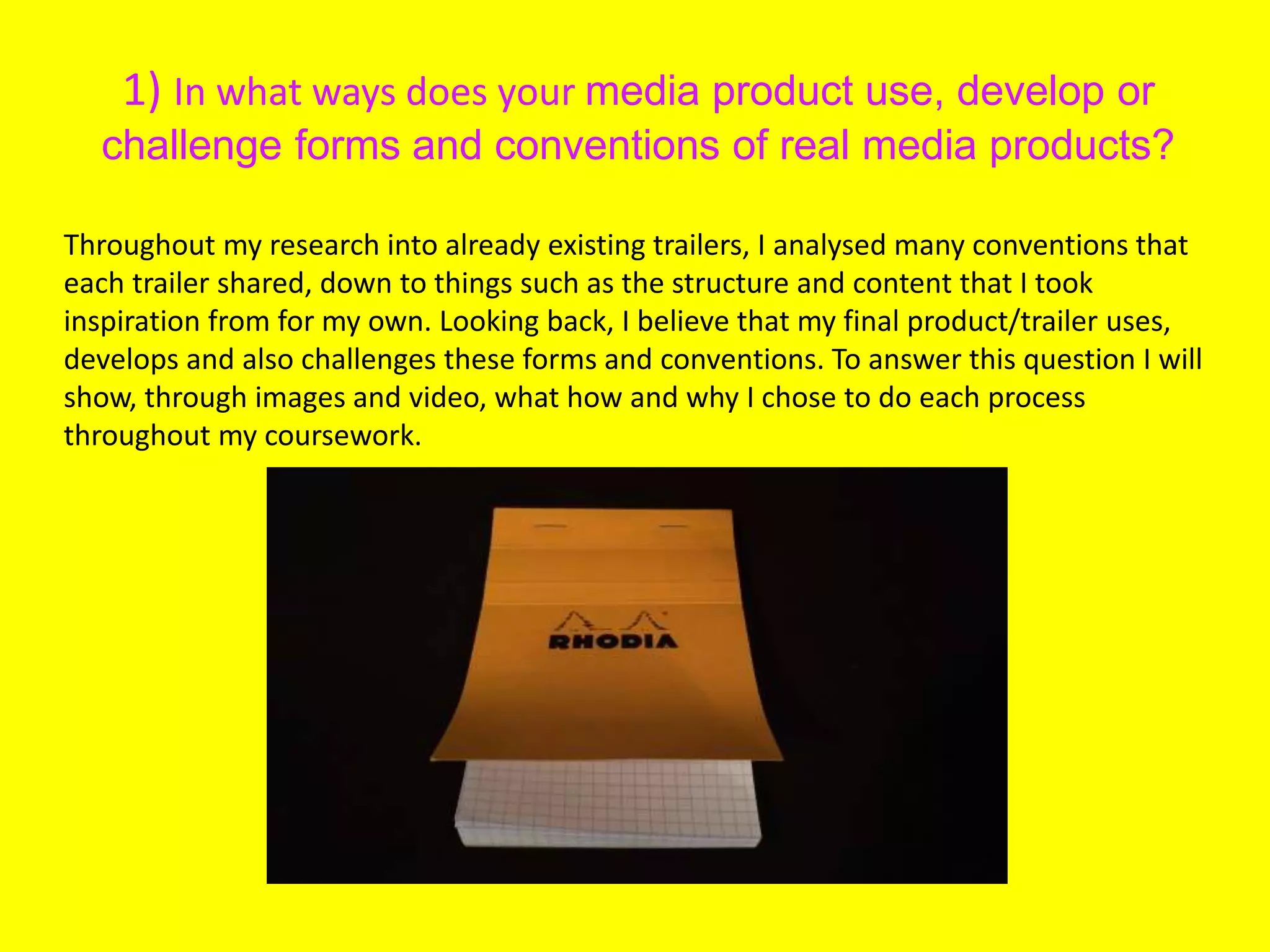 This document summarizes how the media product challenges conventions of real trailers. It analyzes conventions from films like The Conjuring and Let the Right One In to introduce the main character, use soundtrack over dialogue, and end with a title screen. The product challenges conventions by not using voiceover and instead relying on imagery and music to build suspense. It also challenges big-budget ident conventions with a low-budget flipbook animation. Locations were chosen and lit to look like one setting based on research of period horror films. Inspiration was drawn from The Woman in Black's marketing campaign for consistency across the trailer and poster.