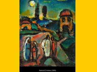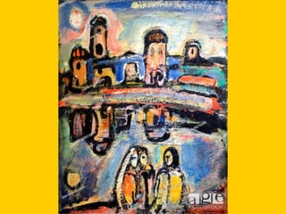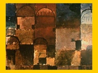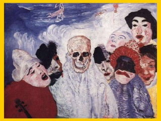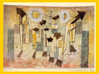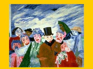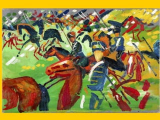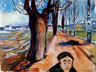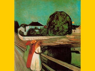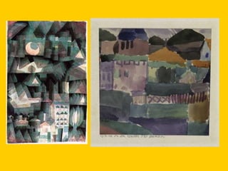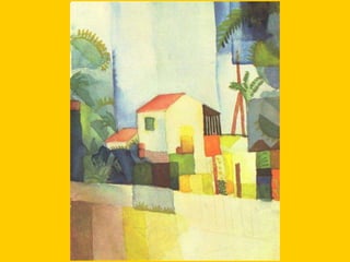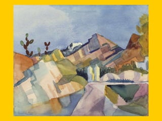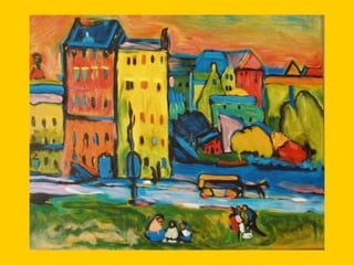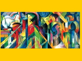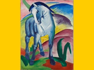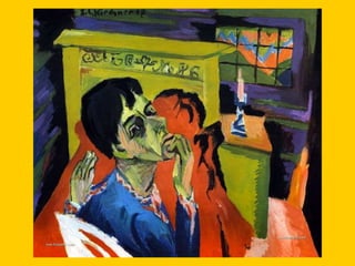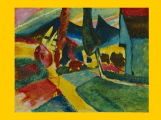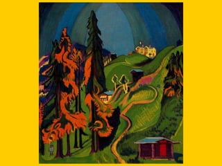 This document provides instructions for students to create an expressionist style pocket notebook representing corners of their school. It includes information about expressionism as an artistic movement that was popular in North Europe from 1905-1933, specifically in Germany. It discusses key characteristics of expressionism like the deformation of reality to express emotions subjectively through vivid colors, sharpened forms, and violent brushstrokes often depicting themes of loneliness, misery, and death. Examples of early expressionist artists mentioned include Edvard Munch, James Ensor, Georges Rouault, and the German expressionist groups Die Brücke and Der Blaue Reiter featuring Wassily Kandinsky, Franz Marc, and Paul Klee. Materials needed for the notebook