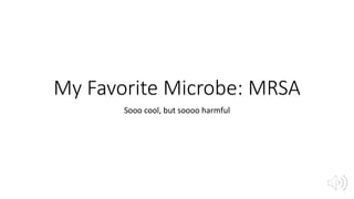 Here is a little bit about my favorite microbe, MRSA! All images seen in this slideshow come from the CDC's website which has more detailed information about MRSA if you are interested.