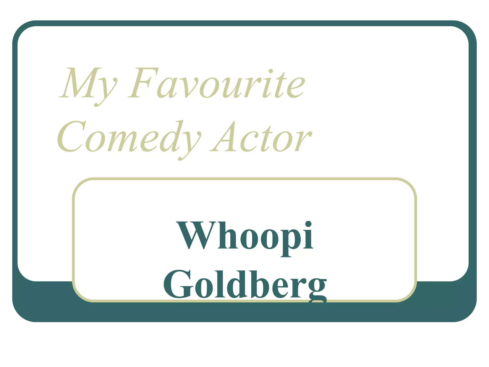 Whoopi Goldberg is an American comedian, actress, singer-songwriter, political activist, author and talk show host. She was born in New York City and raised in Manhattan. Her stage name, Whoopi, comes from her tendency to pass gas loudly, like a whoopee cushion. She later adopted the last name Goldberg at the suggestion of her mother. Whoopi Goldberg received two MTV awards in the early 1990s for best comedic role. She began performing on stage at the age of eight. The author chose Whoopi Goldberg as their favorite comedy actor because she can subtly and accurately convey character emotions in a strong yet kind and loving way that causes a storm of feelings.