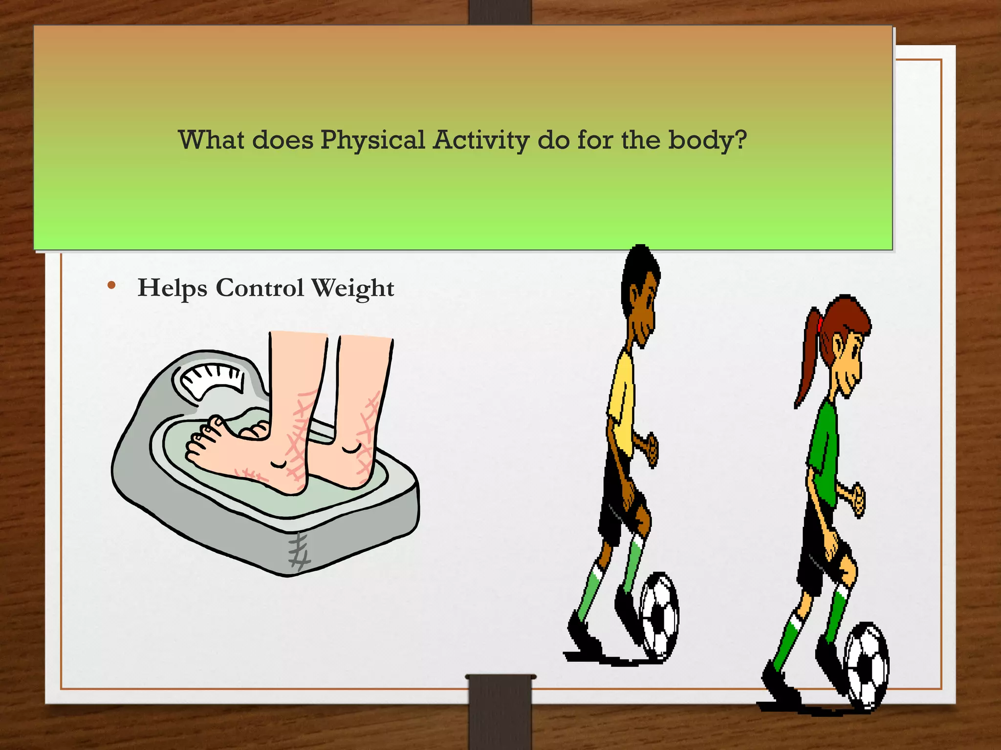 This document discusses the importance of physical education and physical activity. It begins by outlining some of the physical benefits of exercise, such as controlling weight, reducing risk of diseases, and promoting brain growth. It then discusses why physical education is important in primary schools for developing healthy habits and promoting fitness. The document recommends that children get at least 60 minutes of physical activity per day. It provides some strategies for incorporating physical activity into the school day, such as providing active breaks and encouraging physical activity before and after school. Overall, the document emphasizes that regular physical activity has significant cognitive and health benefits for children.
