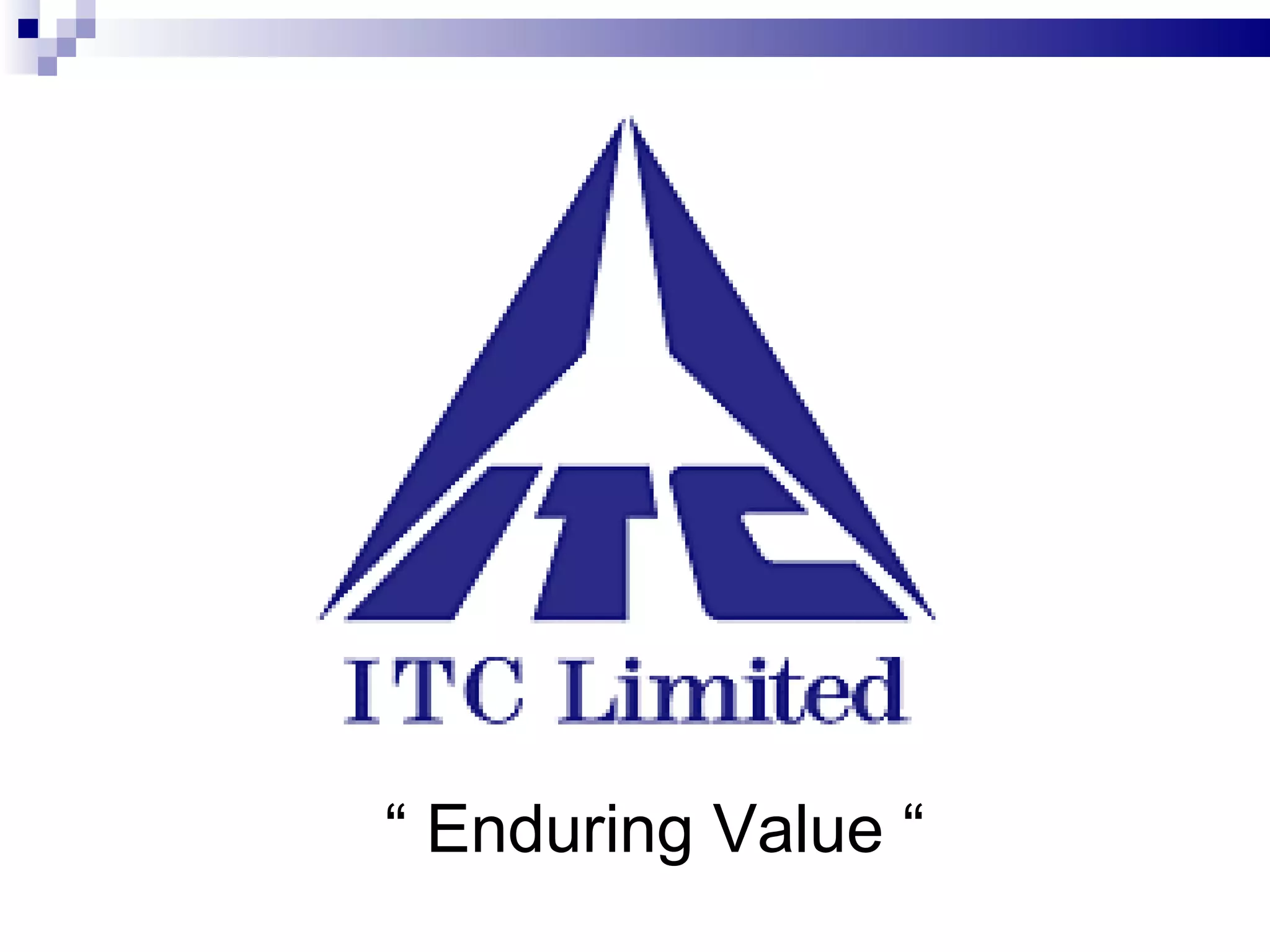 - ITC Limited is an Indian conglomerate founded in 1910 in Kolkata as Imperial Tobacco Company of India. It has diversified into various businesses including cigarettes, hotels, paper, FMCG, IT, and agri business.