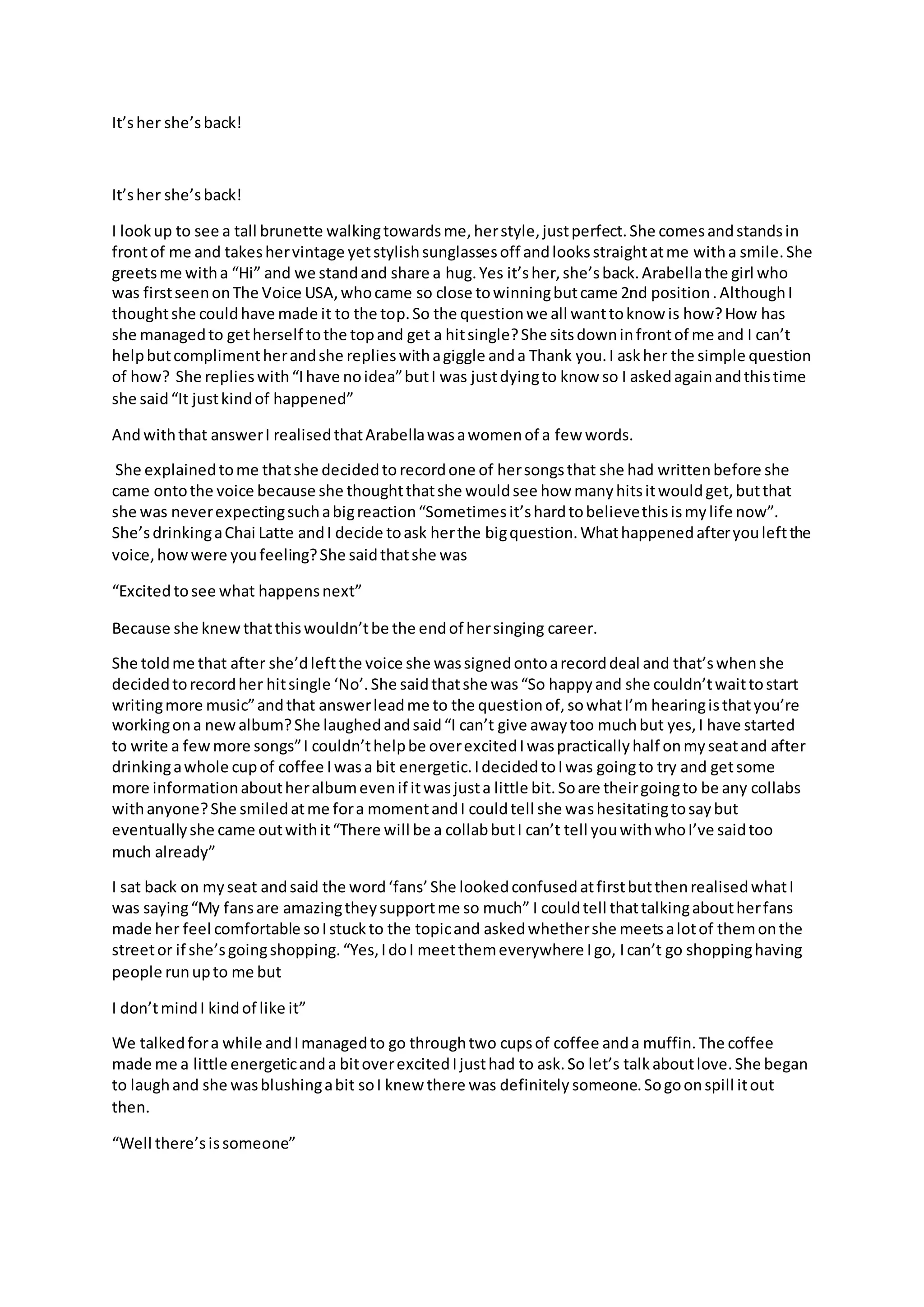 Arabella, who came in second on The Voice USA, has found success with her hit single "No" after signing a record deal. She revealed that she is working on her debut album, which will feature a collaboration with an unnamed artist. Arabella also opened up about her new romantic relationship with her best friend Adrian. She shared that their first date involved staying in, eating favorite foods, and watching movies - a simple evening that Arabella loved.