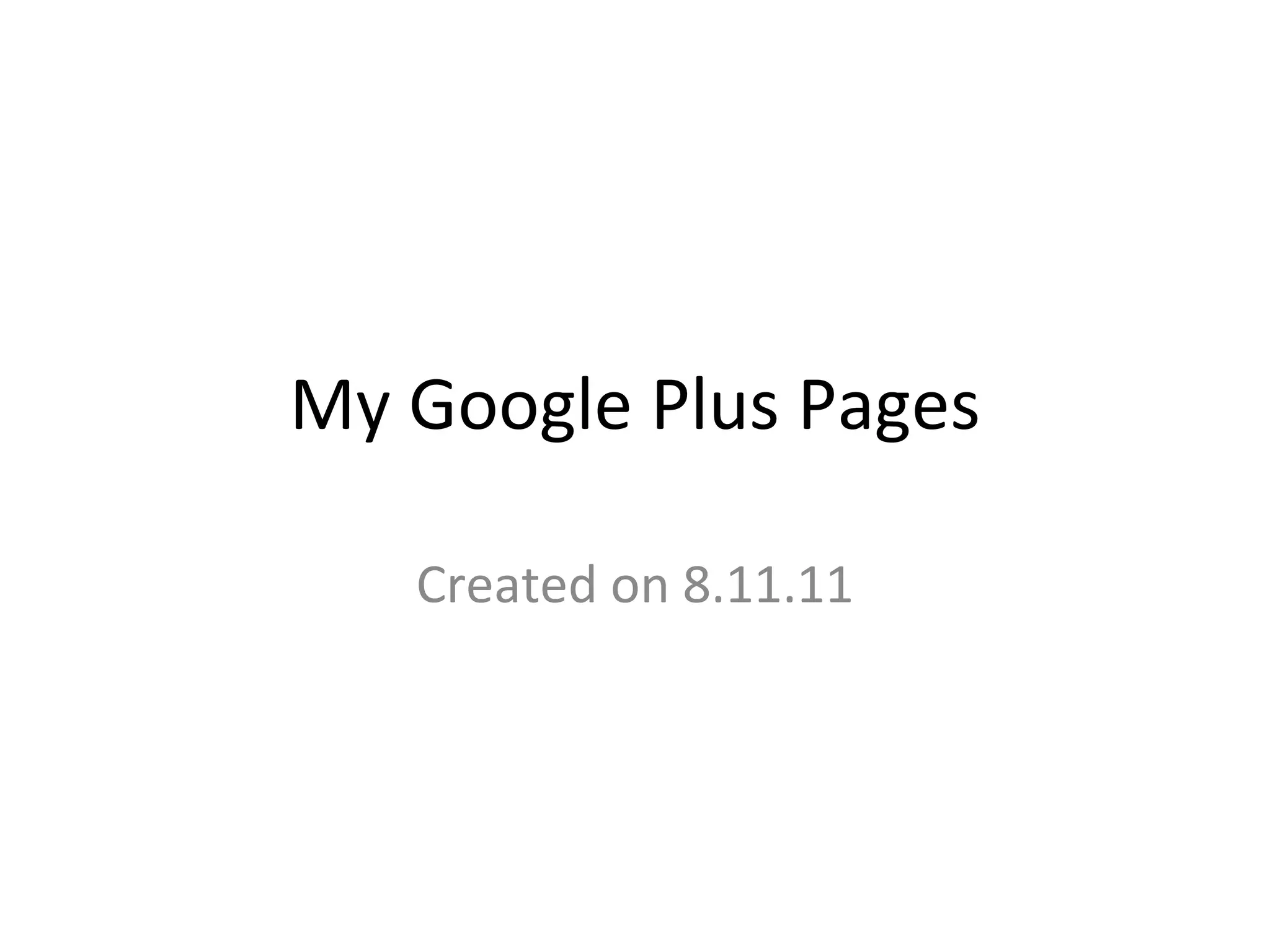 This document lists several Google Plus pages that were created by the author on August 11, 2011 related to different topics including plastic bottle manufacturers, the author's blog, motorcycles, motorcycling updates, Korean movies, and provides links to the author's other online profiles on Wordpress and social media.