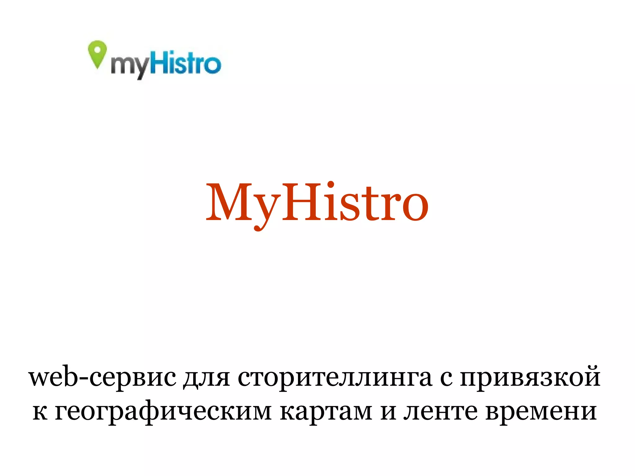 Myhistro - это веб-сервис для создания интерактивных историй с привязкой к географическим картам и временной шкале, позволяющий пользователям добавлять фотографии, видео и текст. После регистрации и создания событий, пользователи могут редактировать и просматривать свои истории в автоматическом режиме, а также делиться ими через социальные сети или экспортировать в формате PDF. Сервис включает большую библиотеку профессиональных историй и предоставляет инструменты для сортировки и организации контента.