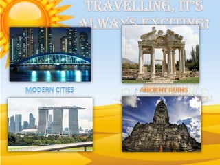 The document discusses the Great Barrier Reef, Sydney's places of interest, and kangaroos as things Australia is known for. Kangaroos are an iconic Australian animal seen in the wild. Sydney has popular tourist destinations like the Opera House and Harbor Bridge. The Great Barrier Reef is a natural wonder off the coast of Queensland, famous for its coral and marine life.