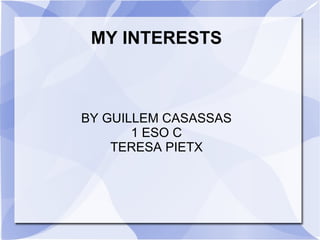Guillem enjoys several sports like football, running, and mountain biking. He also enjoys esports and cycling. His favorite food is spaghetti in various styles like carbonara or bolognese. Guillem lives in Gurb, Catalonia and has three pets - two turtles and a dog named Haide. He enjoys listening to music, especially from Florida, and his favorite TV program is unknown.