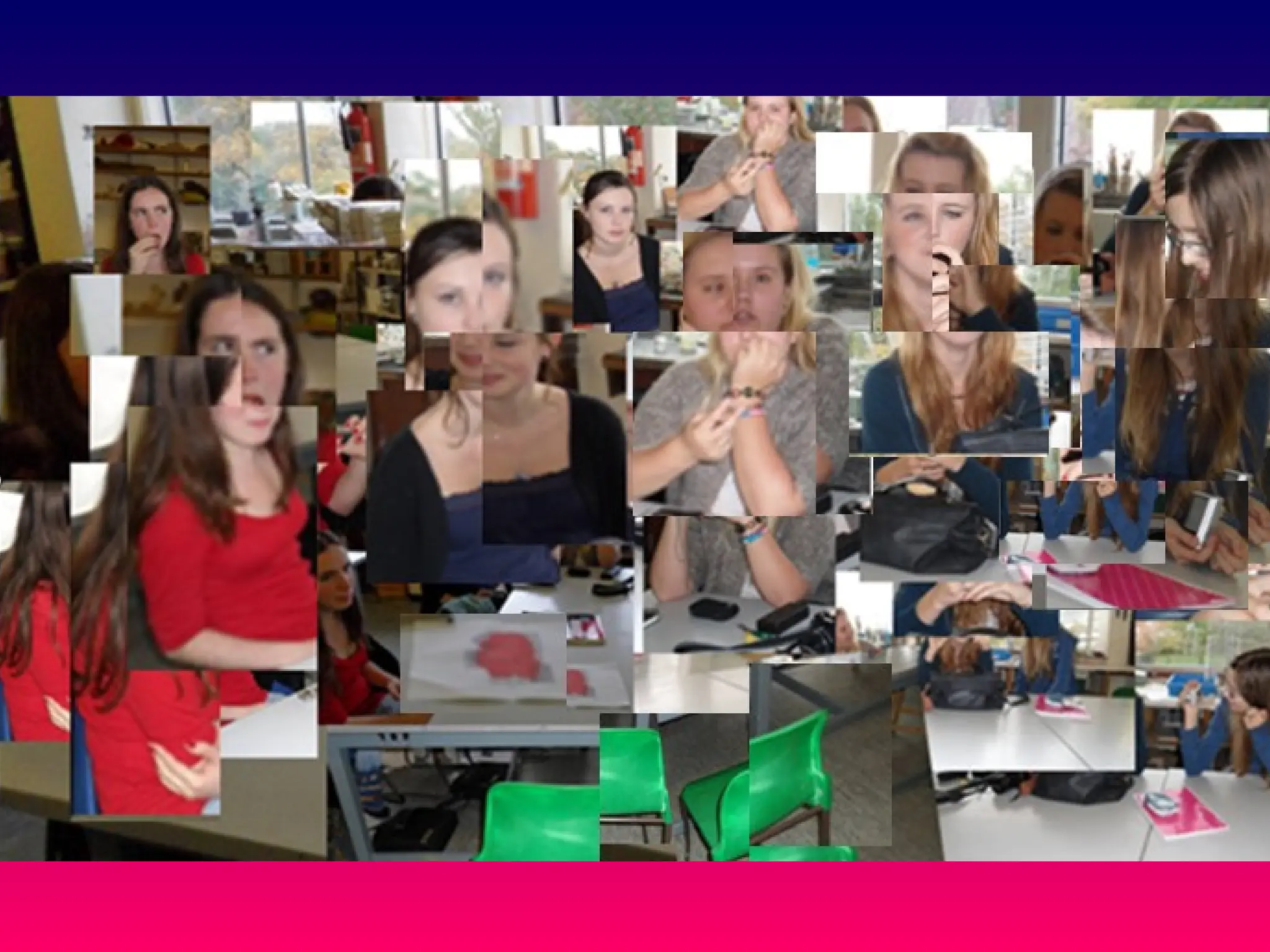 MY JOINER IMAGE My joiner image is made up of about 50 different images that I have positioned together; one thing I particularly think has worked well is the positioning of different people and the close-ups of their faces that really works in the style of joinery. The different facial expressions show a change through time and allow you to see simultaneous perspectives all at once. Because there are so many images placed together and the overall picture is a medium shot, the image does look quite cluttered. This could be improved by simplifying the picture, this can either be achieved by zooming in or altering the colour and shapes to highlight outlines so the main subjects stand out.
