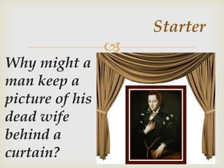 The document provides context and analysis for Robert Browning's dramatic monologue poem "My Last Duchess". It explains that the poem was inspired by the real-life Duke of Ferrara in 16th century Italy. Through his conversation with an envoy, the Duke reveals details about his deceased wife, the Duchess. He suggests that she was too easily impressed and friendly with others, which grew his jealousy. The analysis notes the Duke takes pride in his wealth and status and enjoyed the power and control he had over his wife, going so far as to have her killed. The document examines the poem to understand both the Duke and Duchess's characters and relationships.