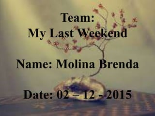 The document is a brief account by Brenda Molina from the Accounting and Auditing School at the National University of Chimborazo. It details an experience from her last weekend dated February 12, 2015. The document is not extensive and seems to be a personal reflection.