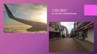 This learning diary details Eleonora's experiences during an Erasmus+ exchange program in Blankenberge from May 7-13. It describes arriving in Blankenberge, participating in workshops on learning problems and trips to Brussels and Bruges, a sports day trying various activities, working on speeches or playing games in preparation for the final ceremony, and saying goodbye to host families before departing.