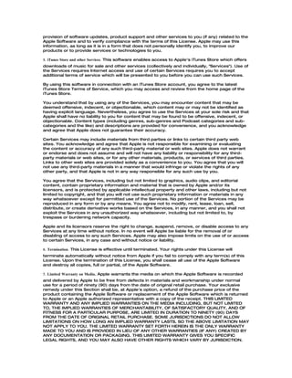 This document is the software license agreement for iTunes. It states that by using the Apple software, the user agrees to the terms of the license. The key terms are: