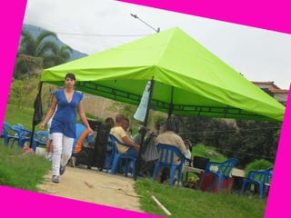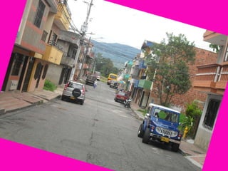 Villa Mira is a quiet neighborhood located in southwest Colombia. It has parks, schools, churches, and recreational areas. Residents organize community activities like bingo and food drives to raise funds for those in need. People in the neighborhood range from friendly to rude, and include a middle-aged woman wearing blue and yellow, a dark-skinned man in his 40s in beige and blue, and a young girl in pink, blue, and black.