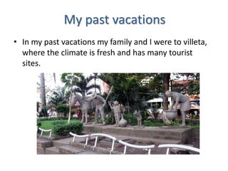 My family and I visited Villeta in the past, where we enjoyed the fresh climate and many tourist sites. We had breakfast at a historic park, swam in the hotel pool where I was the fastest swimmer, and went dancing at night under a full moon. The next day, we saw a spectacular river with a large waterfall and many people, and also visited natural areas with varied trees and rocks. We visited beautiful sites in the afternoon, and the aqueducts were stunning - the Villeta experience was very nice with delicious food and gorgeous weather.