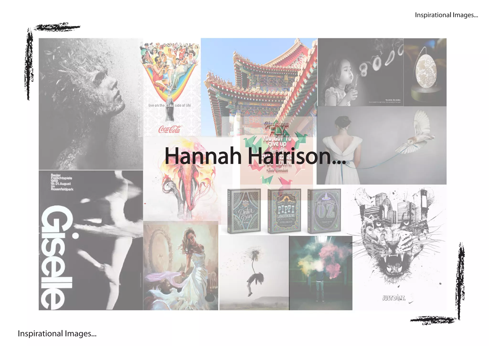 This document appears to be a list of art coursework projects completed by Hannah Harrison for her AS and A2 levels. The projects covered various themes like movement, landscapes, and relationships. Many involved responding to the works of specific artists through different mediums like photography, photoshop, screen printing, and lyno prints.