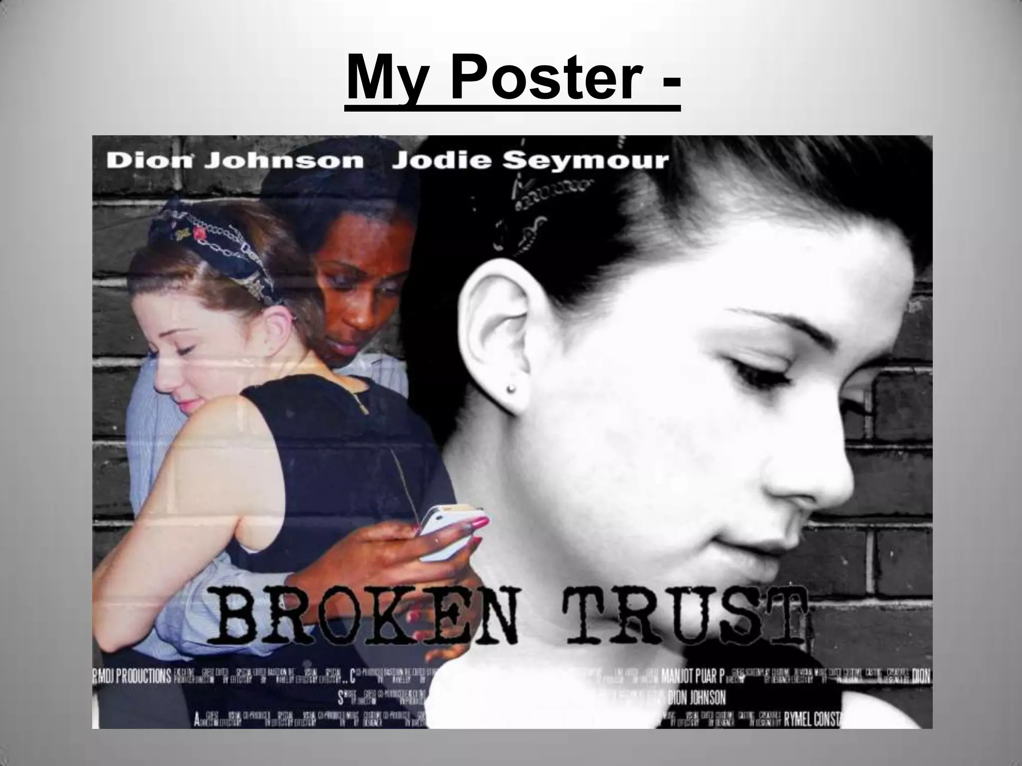 My poster summarizes the short film by displaying the two main characters and conveying the theme of betrayal between them. It uses conventions of social realism, such as a gritty background and low-key lighting, to match the genre of the film. The poster targets 16-25 year olds by focusing on realistic social issues relevant to teenagers. Audience feedback confirmed the poster effectively portrayed the key aspects and plot of the short film.