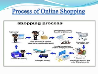 This document summarizes an online shopping system project. It introduces the problems with traditional shopping like time consumption and lack of availability. The proposed online shopping solution allows purchasing goods online to overcome these disadvantages. It then covers the literature review of existing shopping websites, objectives of the project, advantages of online shopping like convenience and selection. Finally, it describes the analysis tools used like use case diagram, ER diagram, class diagram and requirements for the system.