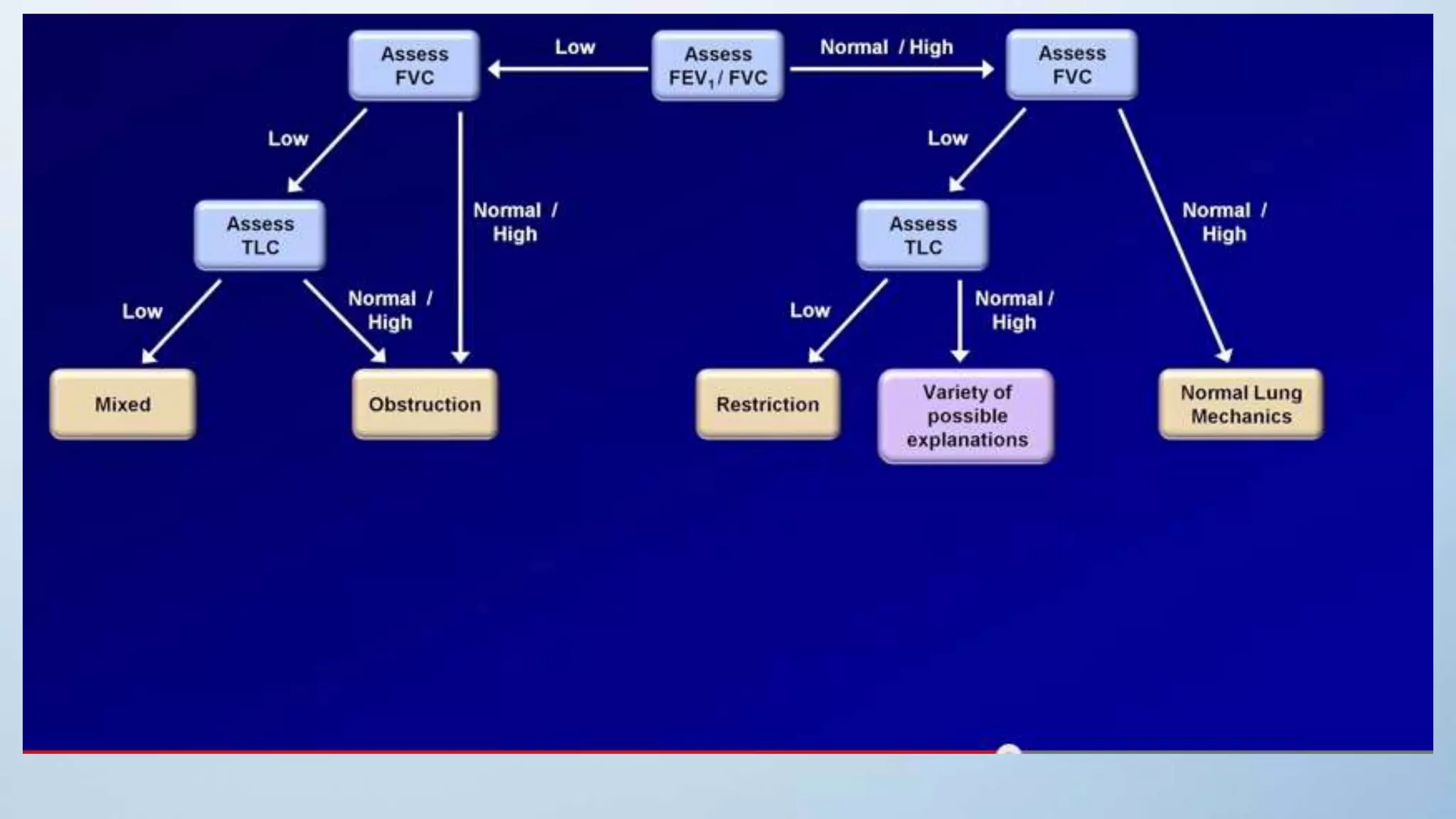 3. Obstructive patterns on PFTs show reduced expiratory flows and volumes with preserved ratios. Restrictive patterns show reduced volumes and normal or increased ratios. Quality must be ensured for accurate interpretation.