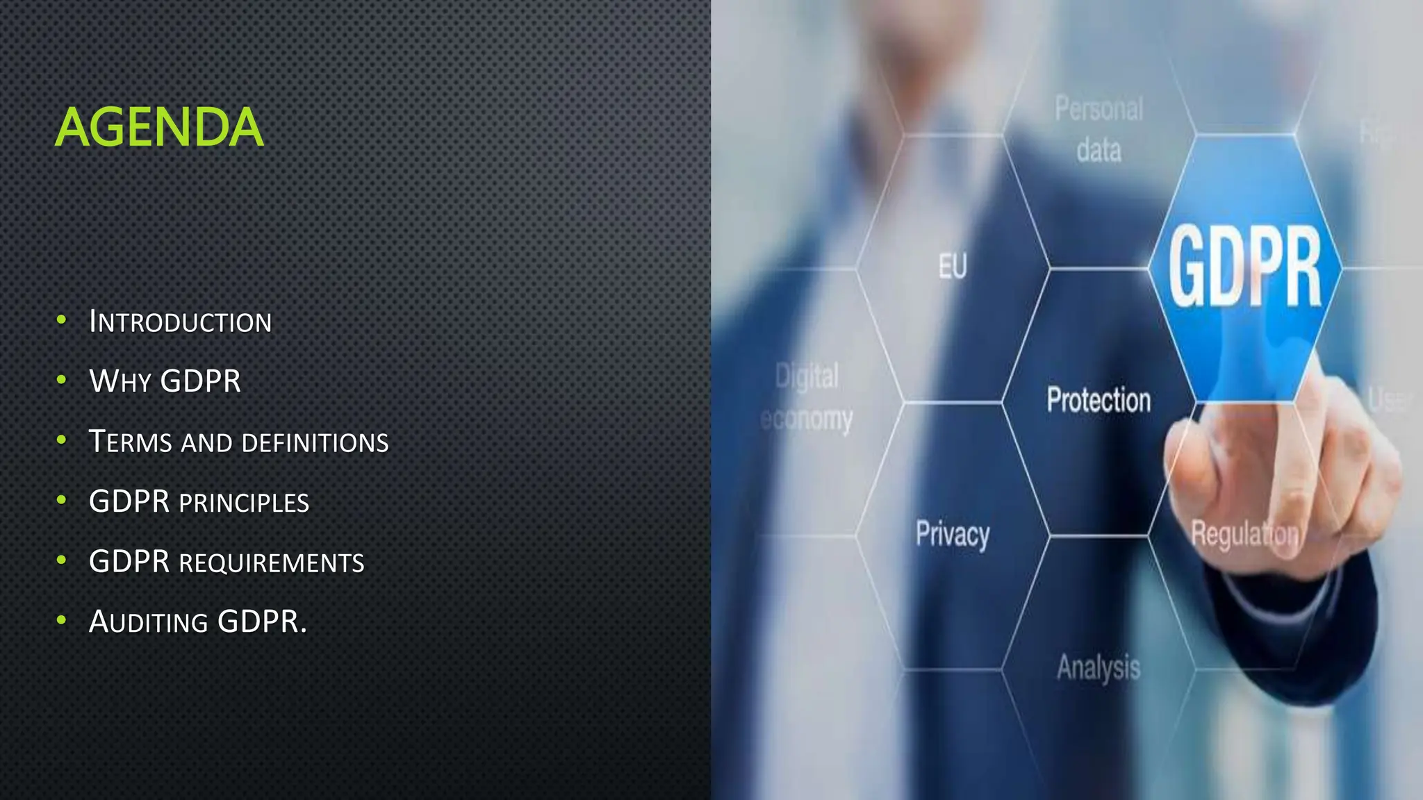 The document outlines the General Data Protection Regulation (GDPR), which aims to enhance data protection for individuals within the EU by establishing standardized data protection laws. It details the rights of data subjects, the responsibilities of data controllers and processors, and the principles and requirements for lawful data processing, including the need for consent, transparency, and security measures. The document also discusses the implementation of GDPR compliance measures, penalties for violations, and the auditing process necessary to ensure adherence to the regulation.