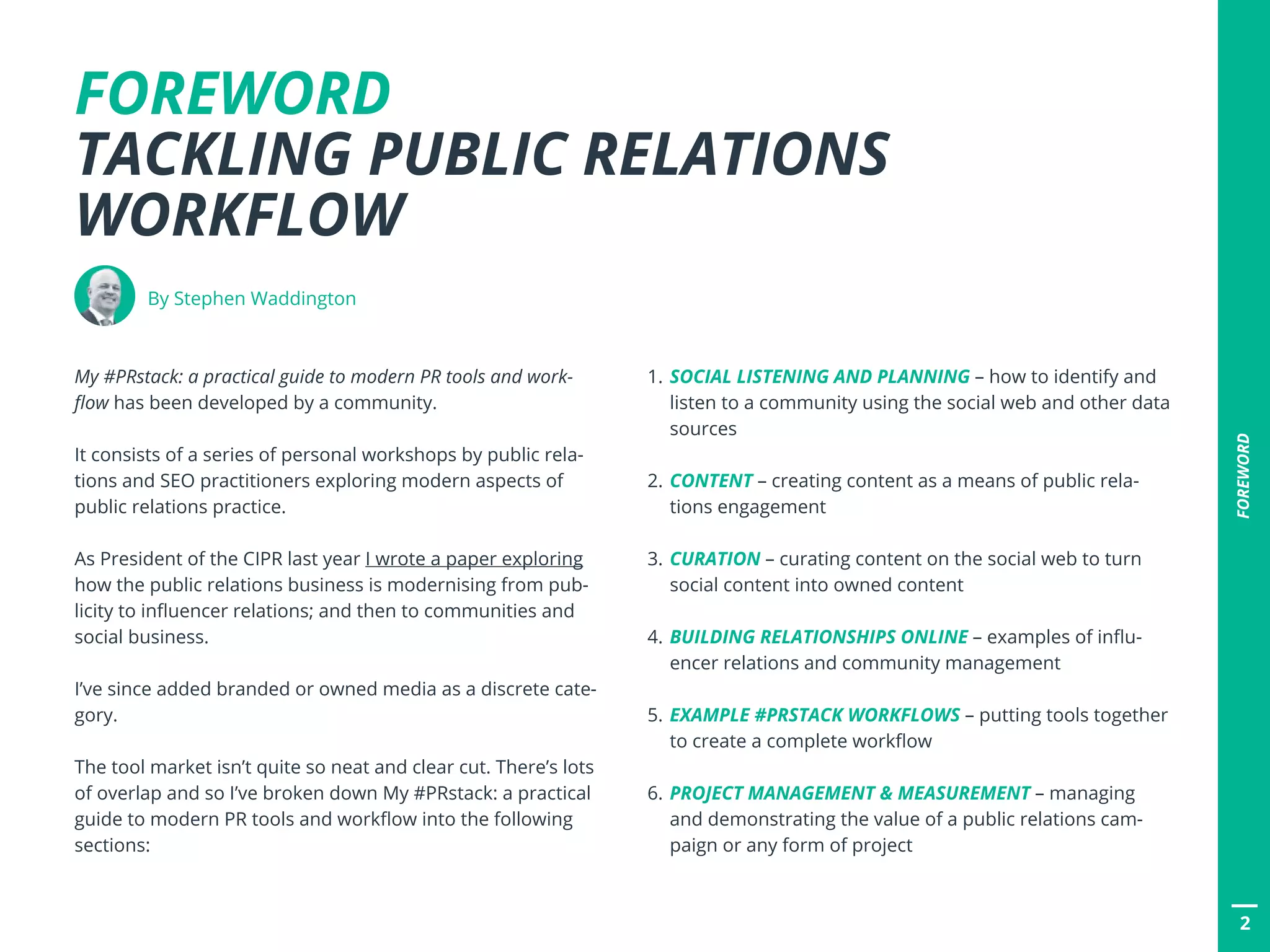 #PRStack: A Practical Guide to Modern PR Tools and Workflow is a collaborative guide developed by PR and SEO practitioners to explore contemporary public relations practices. It encompasses various sections such as social listening, content creation, curation, influencer relations, and project management, detailing over 250 tools to enhance PR workflows. The guide aims to better equip PR professionals with knowledge on modern tools and the evolving landscape of public relations.