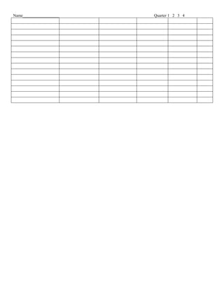 This document appears to be a student's independent reading list for the school year broken into quarters. It includes spaces for the book title, author, genre, start date, completion date, and a rating for each book read independently. The goal is to track independent reading progress and get feedback on enjoyed titles over the course of the year.