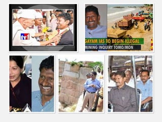 The document discusses Aiswarya's role model, Ubagarampillai Sagayam, a civil servant known for his anti-corruption efforts. He is the youngest of five sons from a farming family in Perunchunai, Pudukkottai, and has degrees in social work and law. Aiswarya considers him a real hero who deserves admiration and recognition for his contributions to society.