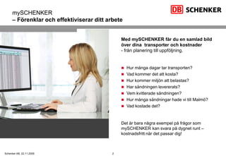 - stödjer dig från början till slut Kom igång med mySCHENKER
