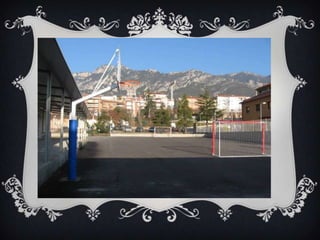 This presentation provides information about the Serra de Noet secondary school which opened in 2006. It is currently located in prefabricated modules on Programari Lliure street but plans to move to an official school building in the future. Photos show the school, a classroom, the informatics room, and laboratory as part of the presentation.