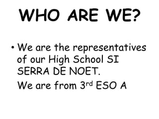 1) The representatives are from SI SERRA DE NOET High School in Berga, Catalonia. They are students in 3rd ESO A.