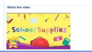 The document provides instructions for 6 activities from an English book involving drawing and coloring objects from a school including a classroom, table, chair, and board. Students are directed to specific pages in the book and asked to complete the activities, with some activities asking them to identify objects. They are also instructed to watch a related YouTube video.