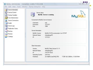 3. MySQL 的图形化工具的使用图形化工具是为用户提供了很大的便利,针对 MySQL 数据库,很多公司开发了自己的图形化工具,主要有: MySQL 公司开发的 Administrator 管理工具和 Query Brower 查询工具,针对 C/S 管理,可从 http://dev.mysql.com/downloads/gui-tools/5.0.html 下载最新版本; phpMyAdmin 开发组开发的 web 管理工具 phpMyAdmin ,可从 http://www.phpmyadmin.net/home_page/index.php 下载最新版本;