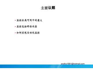 主要议题 • 监控在高可用中的意义 • 监控包括那些内容 •