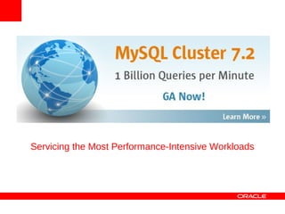MySQL Cluster is a distributed database that provides extreme scalability, high availability, and real-time performance. It uses an auto-sharding and auto-replicating architecture to distribute data across multiple low-cost servers. Key benefits include scaling reads and writes, 99.999% availability through its shared-nothing design with no single point of failure, and real-time responsiveness. It supports both SQL and NoSQL interfaces to enable complex queries as well as high-performance key-value access.