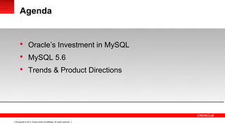 - Key new capabilities in MySQL 5.6 include optimizations for read-only workloads, online DDL, dump/restore of InnoDB buffer pool, and full text search on InnoDB tables.