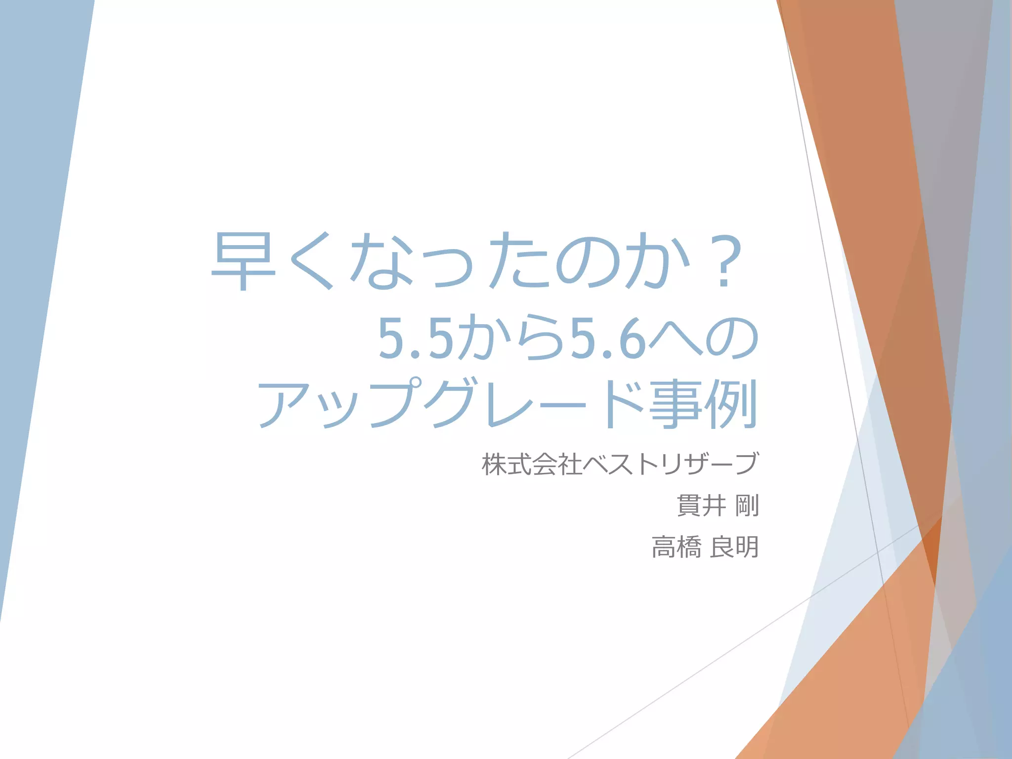 早くなったのか? 5.5から5.6への アップグレード事例 株式会社ベストリザーブ 貫井 剛 高橋 良明