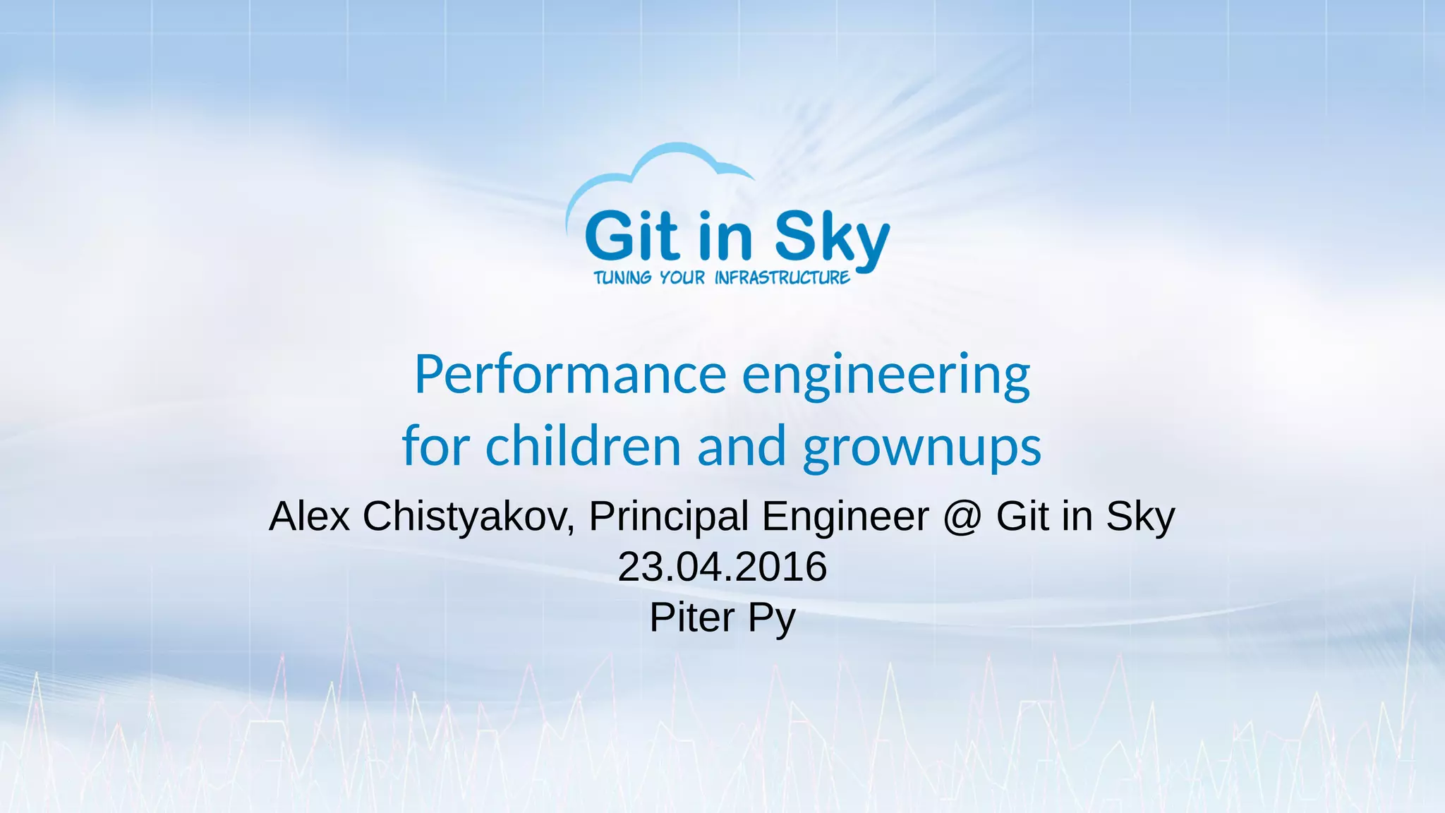 Alex Chistyakov gives a presentation on performance engineering. He discusses using profiling tools like the Poor Man's Profiler and flamegraphs to analyze the performance of a Python program. He profiles a Deluge BitTorrent client running in Docker and finds that it spends most of its time in the libtorrent C++ library with about 30% overhead from Python. The profiling helped identify areas for potential optimization.